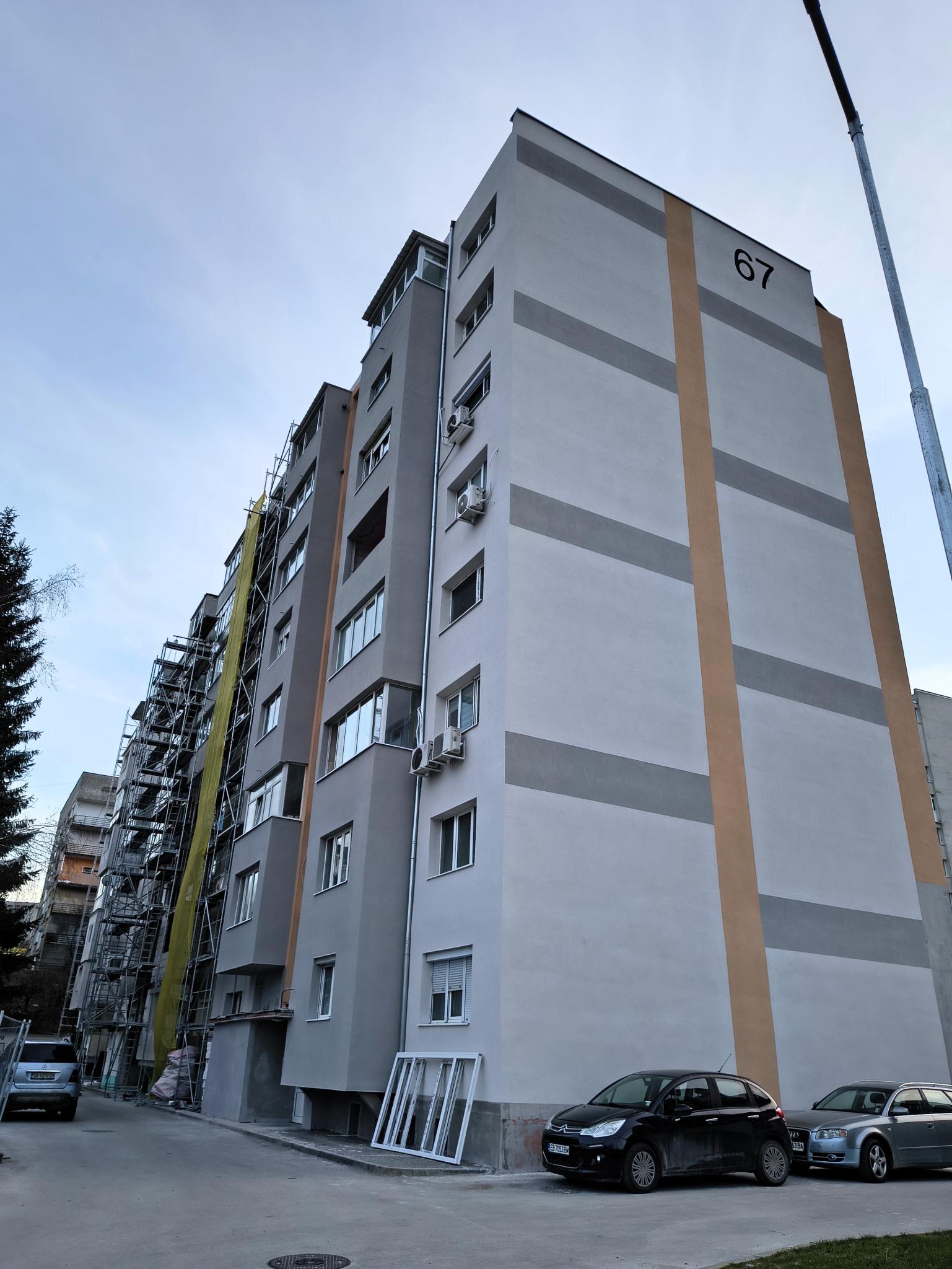 Сградата е въведена в експлоатация през 1972 г., включва 62 апартамента и се извършва цялостно обновяване. Основните предвидени мерки за енергийна ефективност са – топлоизолация на фасади и покрив, подмяна на дограма, енергоспестяващо осветление в общите части.