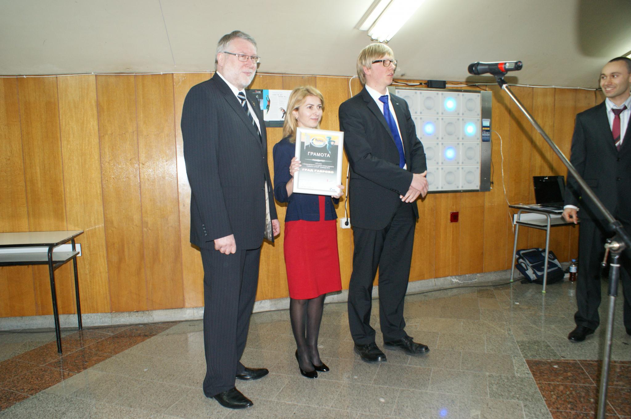 На официалното връчване на грамотата и предаването на T-wall стената на град Габрово присъства делегация от Митвайда, която е на посещение в града по случай 40 години партньорство между Технически университет Габрово и Висшето училище в немския град.