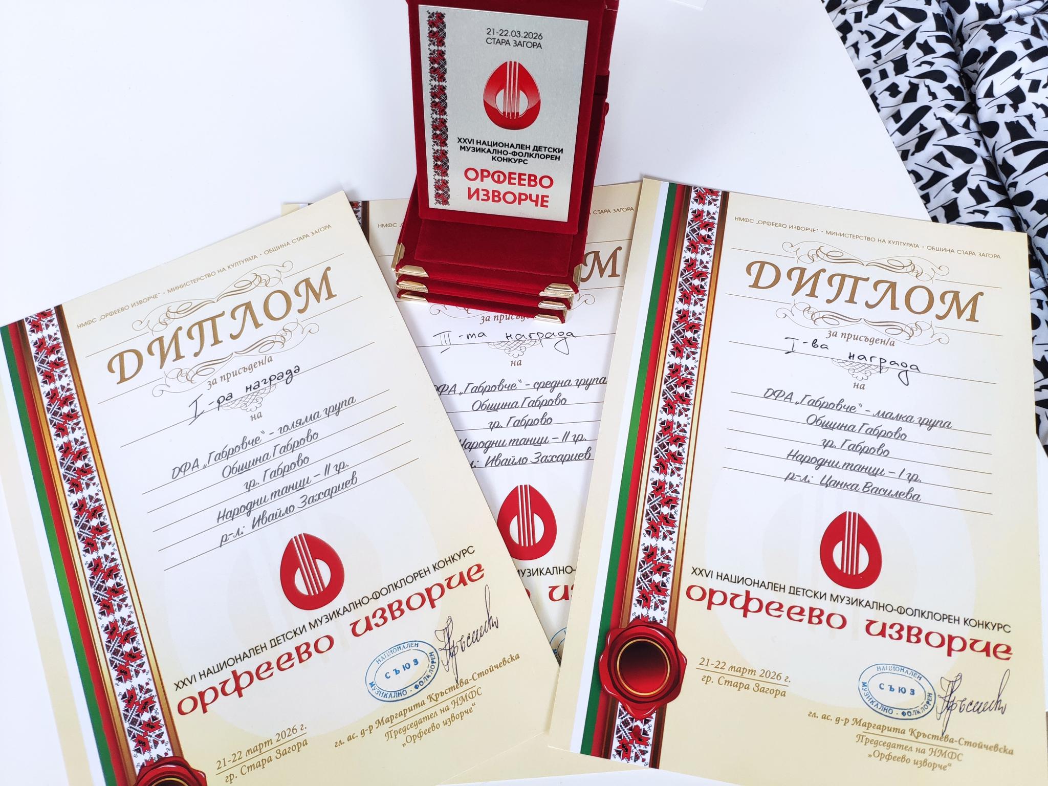 Детски фолклорен ансамбъл „Габровче“ се отличи с впечатляващо участие в XXVI Национален детски музикално-фолклорен конкурс „Орфеево изворче“, проведен на 21 и 22 март в Стара Загора.