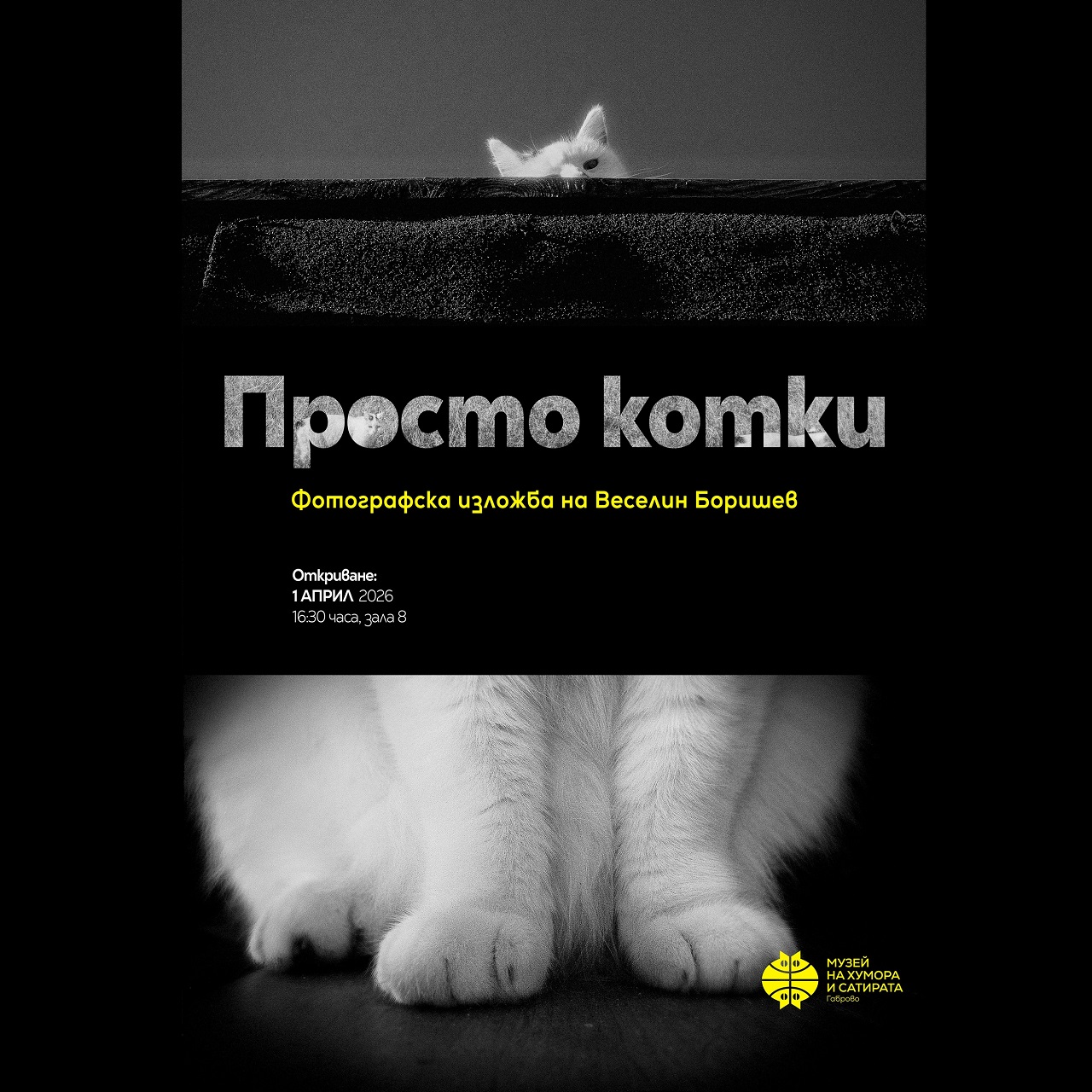16:30 ч. Откриване на фотоизложбата „Просто котки“ на Веселин Боришев, зала 8