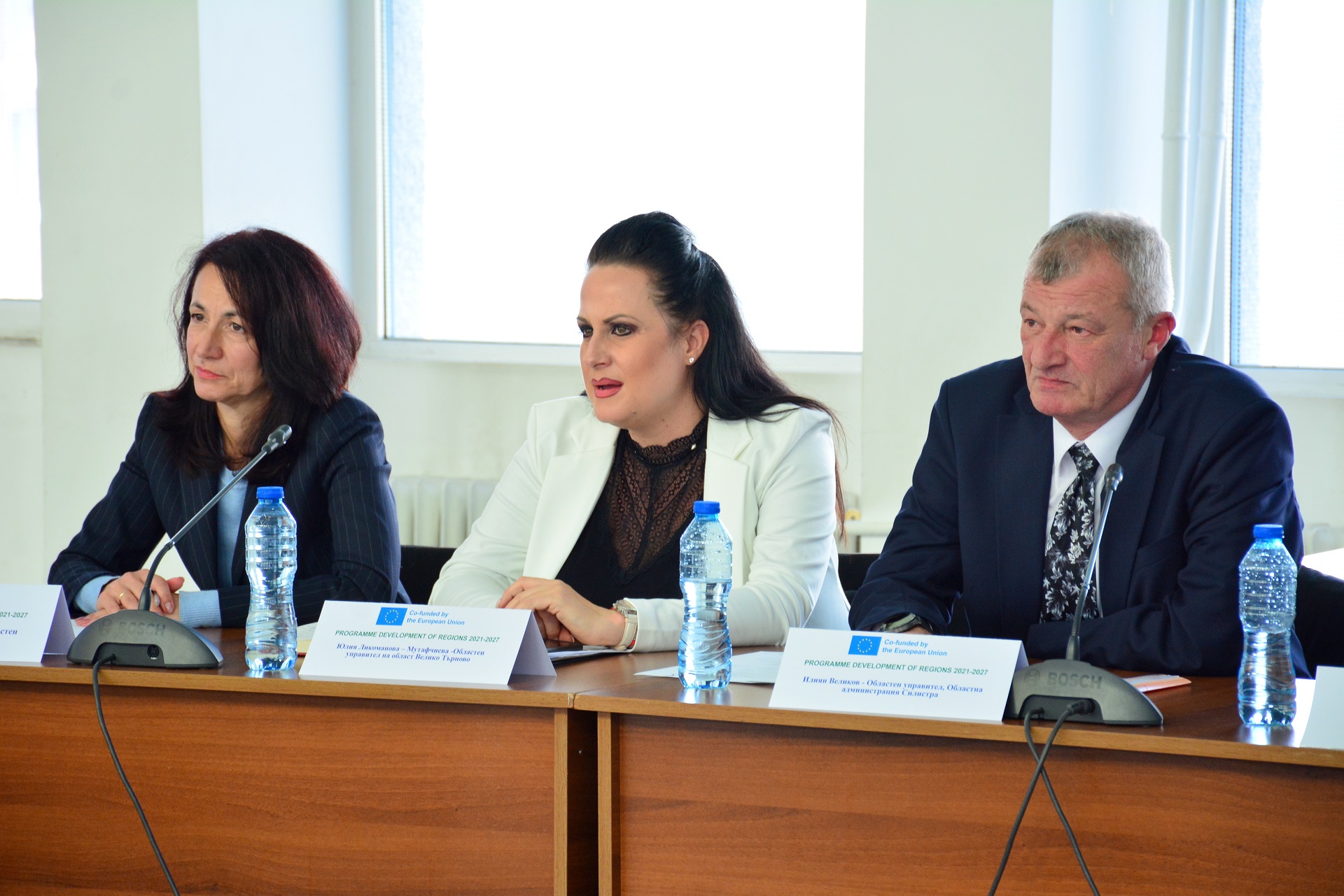 От ляво надясно: Областният управител на Габрово Мария Башева-Венкова, областният управител на Велико Търново Юлия Ликоманова-Мутафчиева и областният управител на Силистра Илиян Великов © Община Габрово