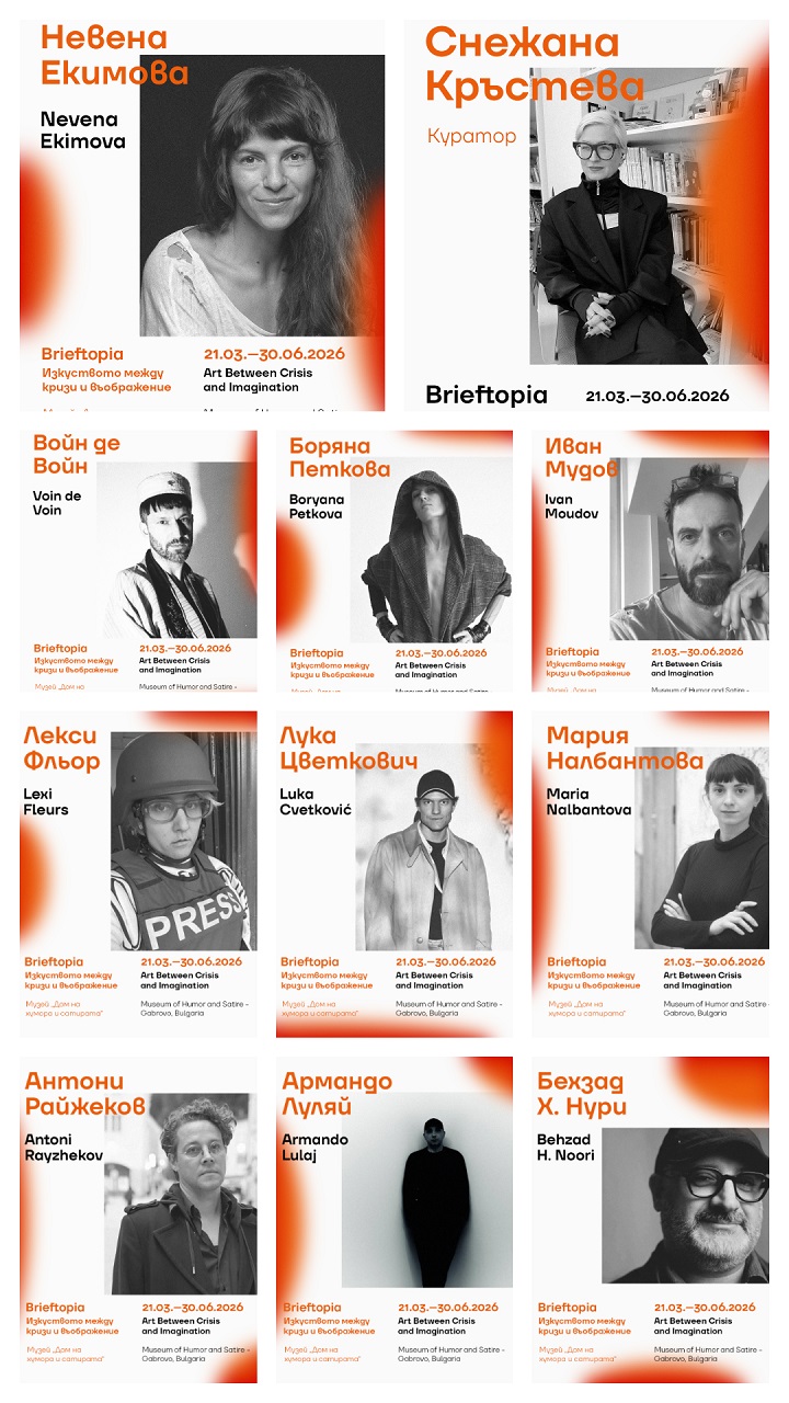 Изложбата „Брифтопия: изкуството между кризи и въображение“ с куратор Снежана Кръстева ще бъде открита тази събота – 21 март, от 17:00 часа в Дома на хумора и сатирата. Тя ще може да бъде видяна до 30 юни 2026 г.
