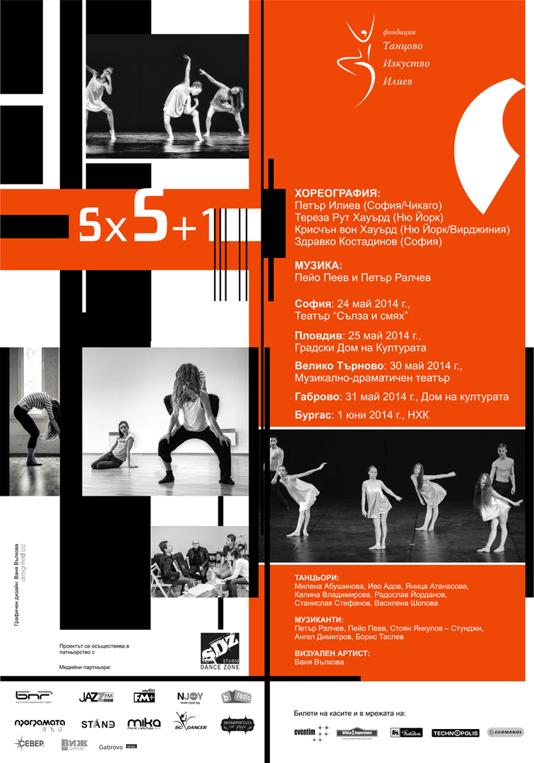 „5 х 5 + 1" е интердисциплинарен спектакъл, който представя (5 + 1) различни, танцово-музикални миниатюри с едни и същи, (5 + 1) млади танцьори, които ще разкажат чрез 5 стила танц посланията на четирима много различни хореографи - балерината Тереза Рут Хауърд, Крисчън ван Хауърд и Здравко Костадинов, който работи в стила хип-хоп. Темите са свързани с човешките взаимоотношения в най-различните им измерения.